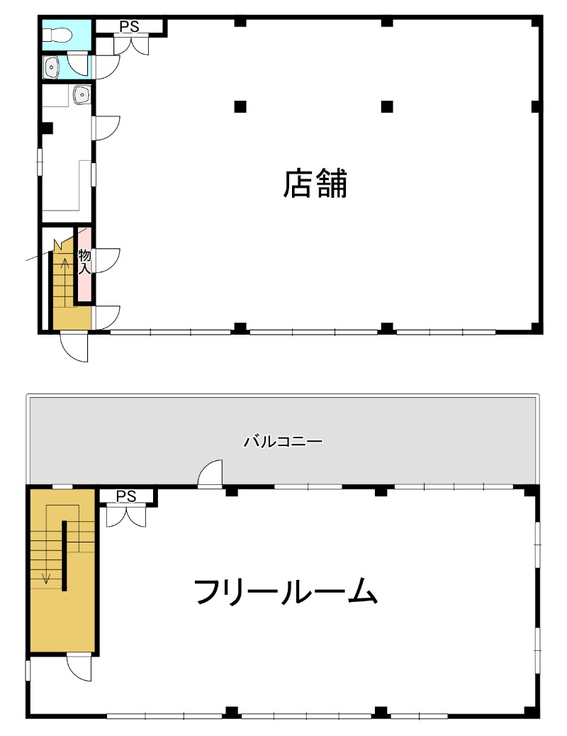 間取り 店舗・テナント・事務所 空室 募集は「1・2階」です。 面積 207.62㎡ 築年 1998年10月